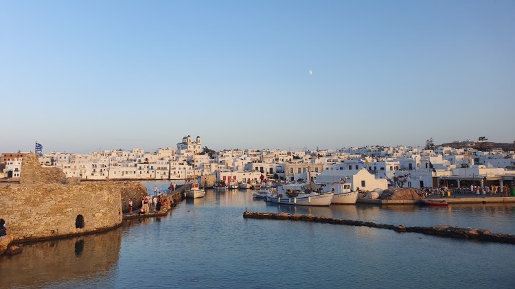 Widok na Paros z ruin Zamku Weneckiego.